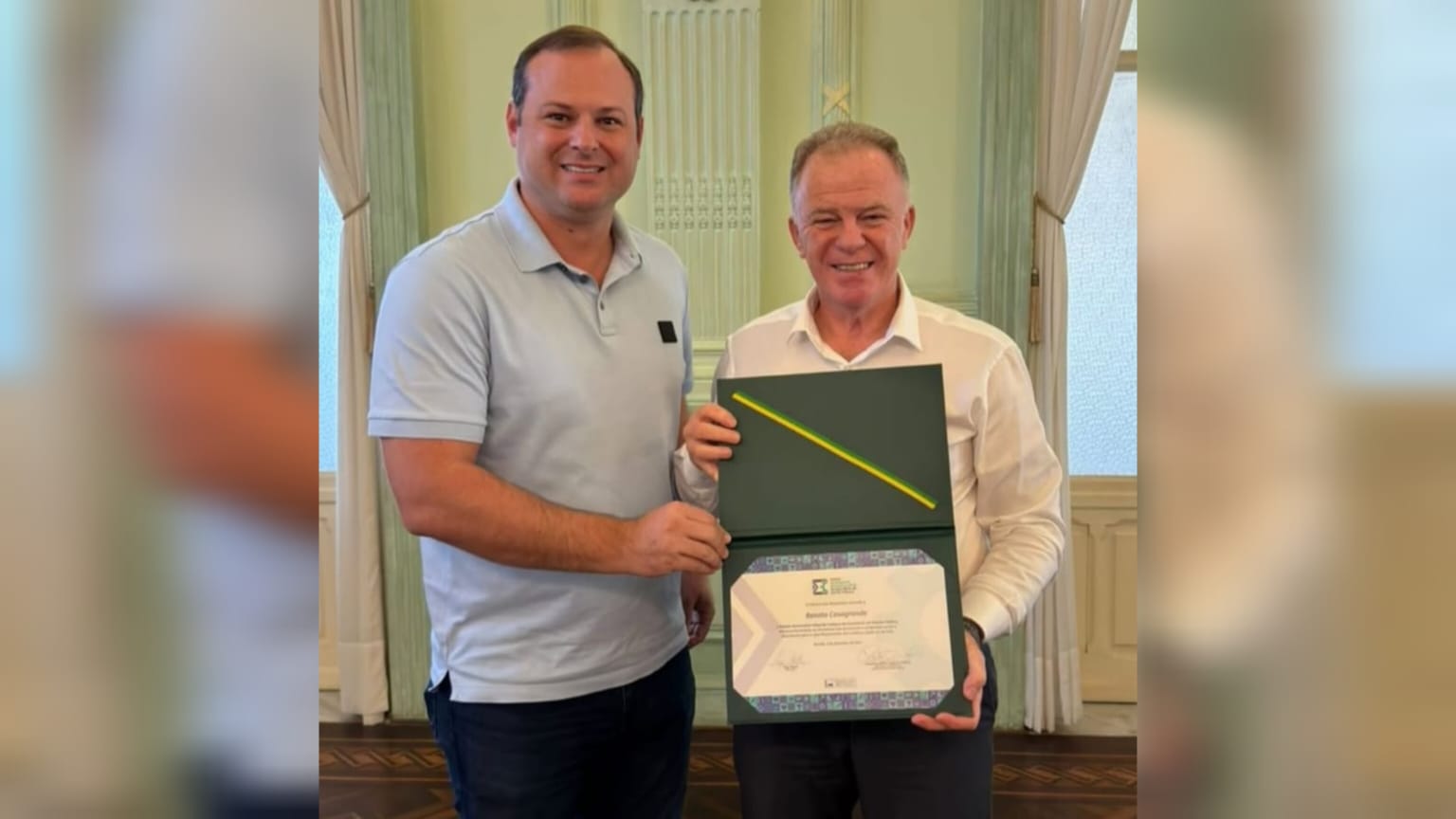 Durante o encontro, Victor Linhalis entregou a Casagrande o “Prêmio Governador Eduardo Campos de Excelência em Gestão Pública”, honraria que visa reconhecer anualmente até cinco personalidades e/ou instituições que se destacam na área de gestão pública. A indicação do governador para receber o prêmio foi feita por Victor e pelo deputado Rodrigo Rollemberg (PSB-DF) em setembro do ano passado e foi aprovada por votação no Parlamento.